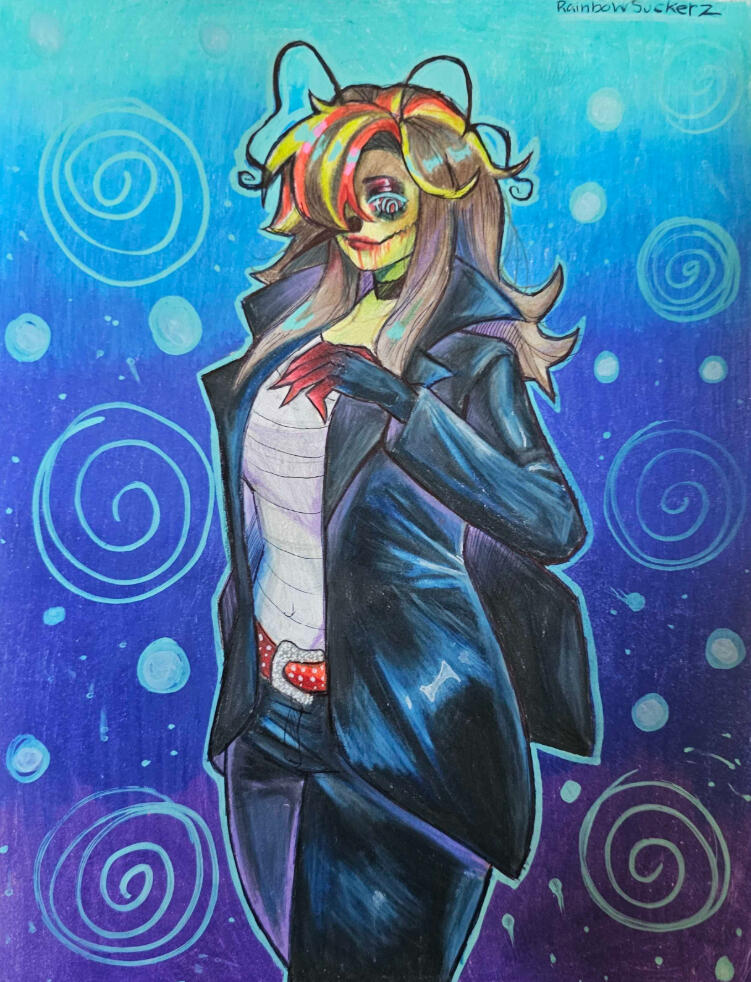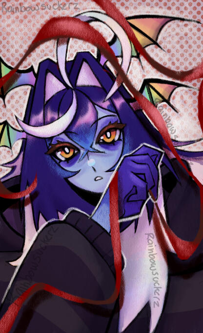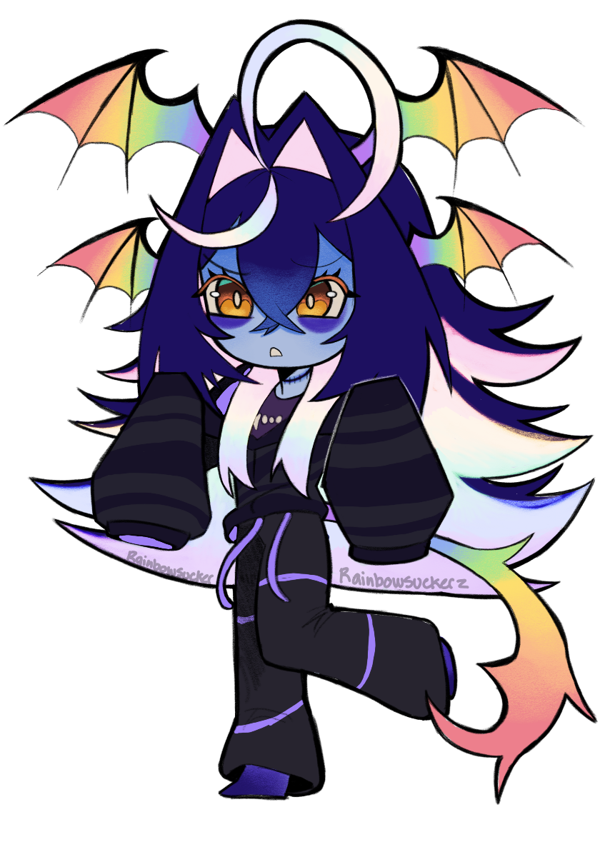 The man himself, a 2300 year rainbow vampire with nothing better to do in his den. being too lazy to hunt prey for their sweet blood, he switched to eating strictly colors; although he still partakes in the feast of red when the opportunity presents itself. when he isn't eating or sleeping you will often find him drawing or gaming while streaming on "rainbowsuckerz".