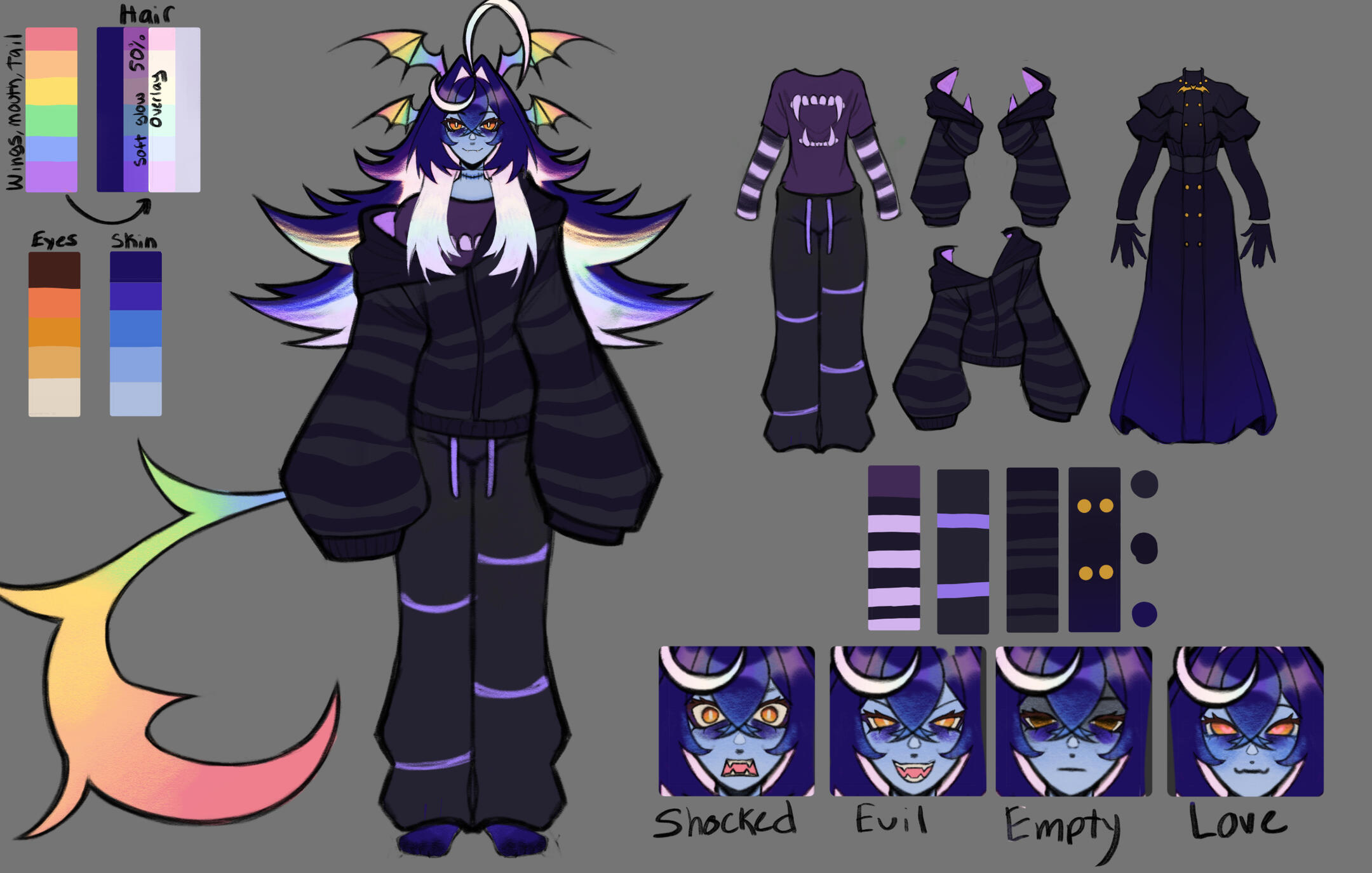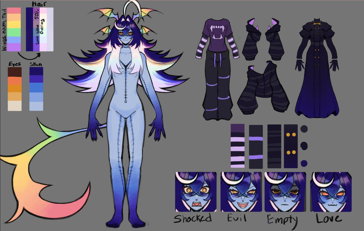 Reference sheets include a front view, close ups on primary areas, and two expressions/extras. Backview, other outfits, additional expressions, and any other additional details will be met with extra 10 dollars PER ADDITION. Please dont be afraid to ask any questions or get a quote.